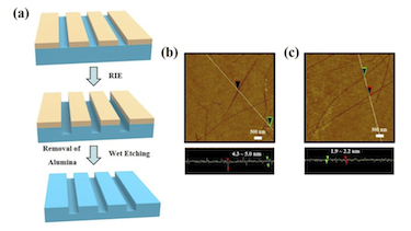 “Making nanostructures less than 5 nm in size is important for fabricating high-density nanoscale components using bottom-up techniques,” explains team leader Chang-Soo Han of the School of Mechanical Engineering at Korea University. “Our method allows us to make nano-trenches with cross-sectional dimensions (width and depth) of around 3 nm or less as well as zinc oxide nanowires with similar sizes.”