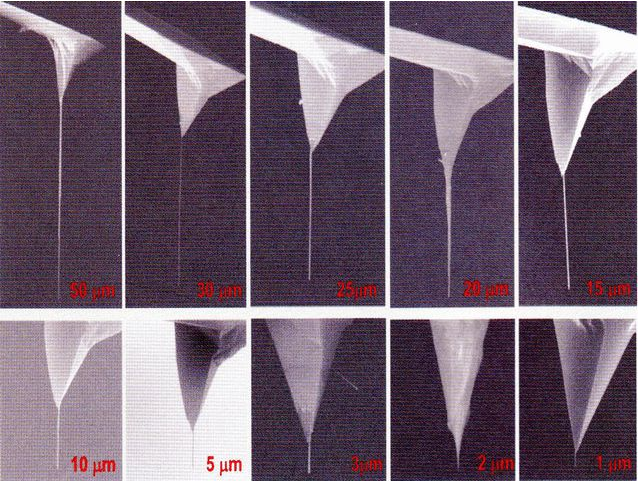 單壁碳納米管是優(yōu)秀的復(fù)合材料增強(qiáng)劑,可將其優(yōu)異的力學(xué)性能賦予復(fù)合材料,使復(fù)合材料表現(xiàn)出原本不具有的強(qiáng)度、韌性、彈性以及抗疲勞性等。在納米探針?lè)矫妫技{米管可以用來(lái)制成分辨率更高、探測(cè)深度更大的掃描探針針尖。