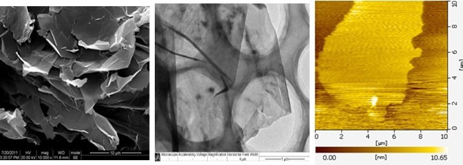 納米石墨烯片具有超大的形狀比(直徑/厚度比),具有優(yōu)良的導(dǎo)電,潤(rùn)滑,耐腐,耐高溫等特性。本公司制備的納米石墨烯片厚度在4~20nm,微片大小在5~10μm,小于20層。