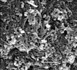 碳納米管用作鋰離子電池電極材料導(dǎo)電劑,1-2%的添加量就能在電極中形成完整的導(dǎo)電網(wǎng)絡(luò),且所形成的導(dǎo)電網(wǎng)絡(luò)不會在電池的充放電過程中因?yàn)殡姌O材料的膨脹與收縮而斷裂,避免了商品鋰離子電池在充放電過程中因?yàn)閷?dǎo)電網(wǎng)絡(luò)的破壞而引起的容量下降。