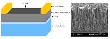 First, the group grows MWCNT arrays on thin layers of silicon dioxide grown on top of silicon substrates. T-hese are then incorporated into hybrid sensor devices after functionalizing them with various conducting p-olymers.