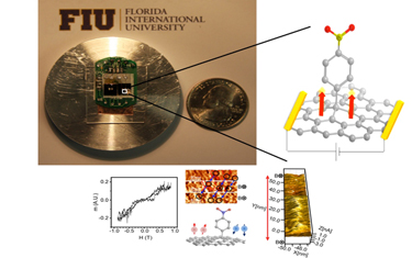 Sakhrat Khizroev at Florida International University and colleagues made their discovery thanks to detailed low-temperature magnetotransport and superconducting quantum interference (SQUID) measurements, and vibrating sample magnetometry (VSM) on graphene samples functionalized with nitrophenyl (NP) groups. The material studied appears to become an organic molecular magnet with ferromagnetic and antiferromagnetic ordering that persists at temperatures above 400 K.