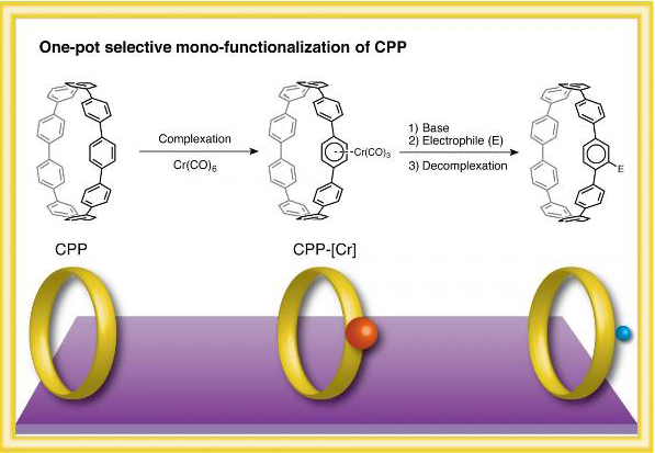 When the researchers found that a monometallic CPP complex could be realized, Itamis team analyzed the possibility of acquiring monofunctionalized CPPs from this CPP complex. The steps involved in achieving the monofunctionalized CPPs were described by Itami and Segawa.