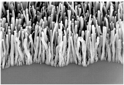 萊斯大學材料學科學家普里克爾·阿迦延發(fā)現(xiàn)了一種模擬沙漠甲蟲(Stenocara beetle)的方法。這種甲蟲能伸展翅膀捕獲沙漠晨霧里稀有的水分子,以此解渴而在沙漠中生存。研究人員改進了碳納米管森林的生長過程,先在碳納米管森林頂部沉淀一層超級憎水層,然后把它們從硅基底座上剝離,翻轉(zhuǎn)過來再在上面加一層親水聚合物。