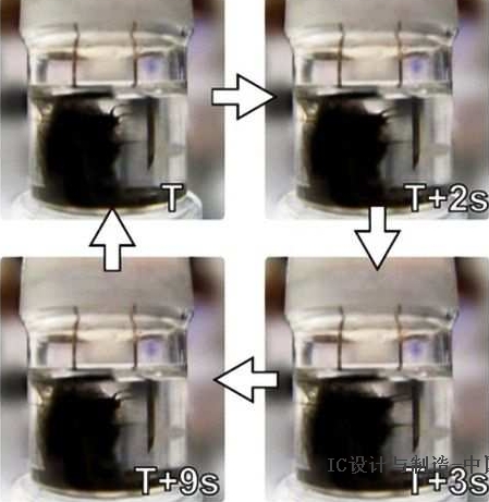 燒杯中正在發(fā)展的類生物樣式,研究人員形容為正在長出“手臂”的“昆蟲”