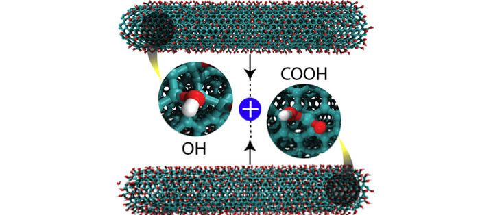 在試驗(yàn)中,研究人員制備了兩組多壁碳納米管,一種被羧基修飾而另一種被羥基修飾。當(dāng)將其放在研缽中使用研杵研磨20分鐘以上時(shí),這些化學(xué)添加劑相互發(fā)生反應(yīng),使得碳納米管變成納米帶,此過程中還產(chǎn)生了一種副產(chǎn)品水。